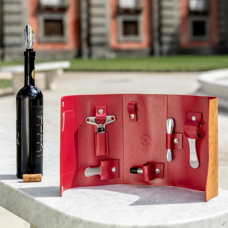 True to the refined aesthetic of the Nomad Collection, the case houses L’Atelier du Vin’s iconic corkscrew in a striking honeyed gold edition. Featuring a natural black leather handle, it offers a soft touch and comfortable grip for effortless bottle opening. A thoughtful leather spiral protector completes its sophisticated design.