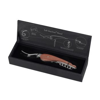 The Oeno Motion Wood & Black corkscrew features a robust jaw with an integrated foil cutter, designed to fit most bottle neck diameters. To open a bottle, simply position the steel worm over the cork and use the ergonomic solid walnut lever. With one smooth and effortless motion, the cork is extracted, blending strength with elegance. A second motion cleanly removes the cork from the tool.