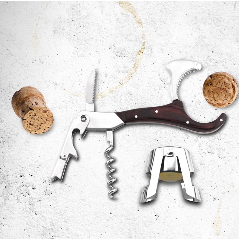 • Professional screw, Champagne pliers, Capsule cutter knife, Cap lifter