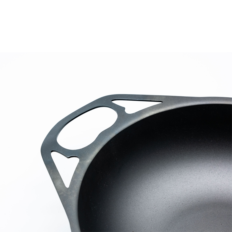 Handles on our dual-handled woks and pans will get hot as the short loop handles are not long enough to dissipate the heat. Handle with care!